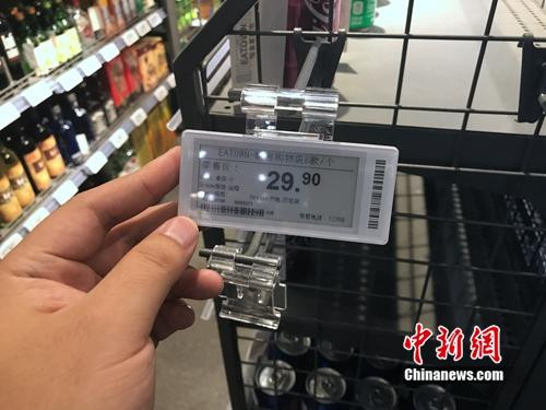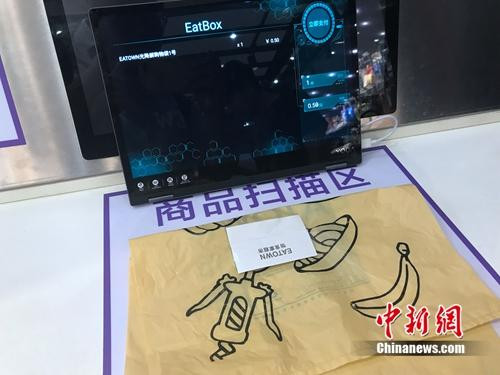 無人超市中,每款商品上都貼有類似的RFID標(biāo)簽。中新網(wǎng) 吳濤 攝