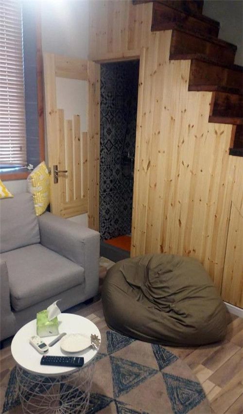 室內總面積大概20平方米,被分隔為上下兩層。房屋雖小,家具及電器卻十分齊全。一樓有冰箱、洗衣機、電視等家電,一人坐的沙發(fā)和懶人沙發(fā)供休閑,布置緊湊,一角的衛(wèi)生間可容納一人洗漱;二層則放置了一張雙人床和一張氣墊床。“除了晾衣服不方便,其余的體驗我們都挺滿意的”,兩人告訴記者,“民宿更有老上海味道,退房也只需要把鑰匙放在門口的箱子里,非常方便?!?/font>