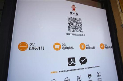 在無(wú)人超市的玻璃門上有二維碼,用微信掃描后會(huì)提示關(guān)注無(wú)人超市公司的二維碼,關(guān)注后下面有“我要開(kāi)門”的應(yīng)用,點(diǎn)擊獲得一把“鑰匙”就可以開(kāi)門。