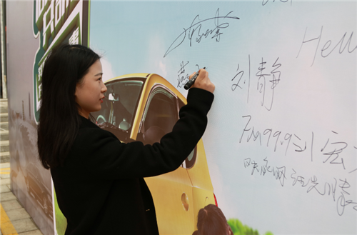 這樣的“懷念”是因為藍天難常伴。告別了珍貴的藍天,告別了全民曬藍天,“老朋友”霧霾又來了。對它的到來,人們已經變得有些“淡定”,而這份淡定的背后卻是深深的無奈。11月20日, “同呼吸,共命運,我們要為空氣做點事”一步用車大科園店盛大開業(yè),并用實際行動為治霾、環(huán)保貢獻一份力量。記者看到,不少朋友到店后,紛紛在承諾墻處簽上了自己的名字,表達了保護環(huán)境,防治霧霾的決心。