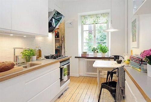 一般家庭的廚房多采用白色或淺色裝潢以及不銹鋼水槽的設(shè)置,色彩豐富的植物可以柔化硬朗的線條,為廚房注入一股生氣。通常廚房位于窗戶較少的朝北房間,由于陽光少,應(yīng)選擇喜陰的植物,如廣東萬年青和星點(diǎn)木之類。而且廚房是操作頻繁、物品零碎的工作間,煙和溫度都較大,因此不宜放大型盆栽,而吊掛盆栽則較為合適。