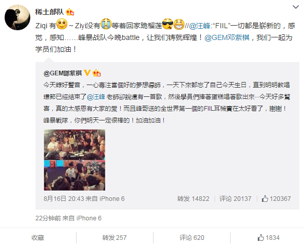 近日,一張章子怡發(fā)布會挺著“大肚”的照片引發(fā)網(wǎng)友熱議,雖然只是假扮孕婦,卻引來大波網(wǎng)友詢問何時準備要寶寶,可見網(wǎng)友對兩人感情生活的關注。8月16日,鄧紫棋在微博上曬出汪峰為其過生日的照片,17日中午,汪峰轉發(fā)此微博并稱要為學員們加油,17日下午,章子怡回復汪峰:“Ziqi有~Ziyi沒有,等著回家跪榴蓮?!?/font>