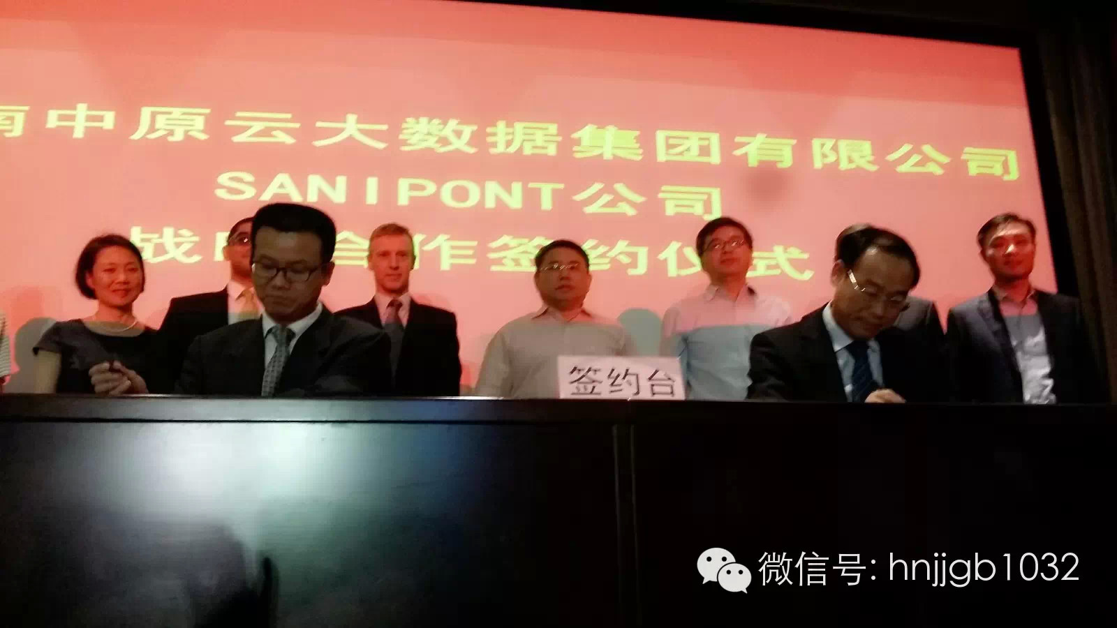 剛剛交付的中原云平臺(tái)今天上午在鄭州中原福塔簽下了跨境合作的第一單——河南中原云大數(shù)據(jù)集團(tuán)有限公司&美國 Sanipont international LLC公司戰(zhàn)略合作協(xié)議。