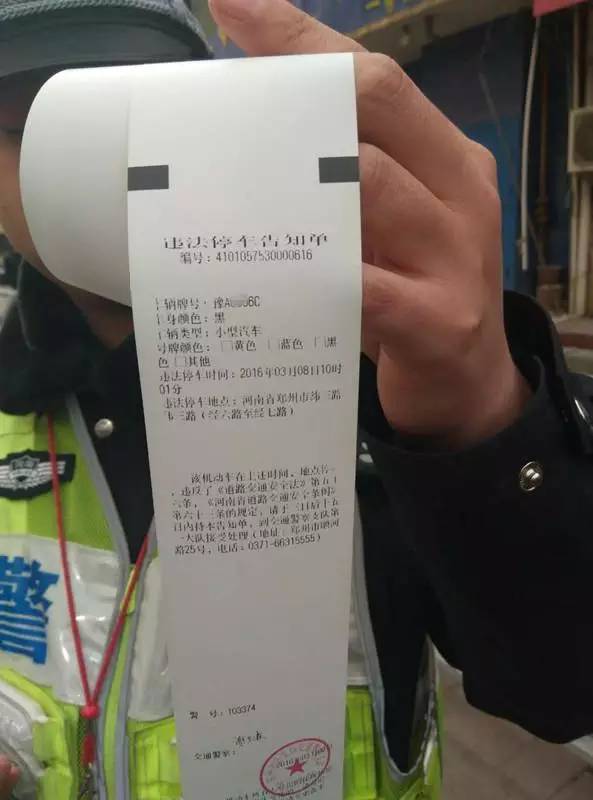 今天上午十點,鄭州交巡警一大隊三中隊的謝民警就利用這種新型警務通對鄭州緯三路經(jīng)六路口違章停放的車輛進行了非現(xiàn)場執(zhí)法,交警將駕駛員的身份信息和車輛信息輸入警務通后,核對無誤后,現(xiàn)場打印出違法停車告知單,而違法信息立刻就被上傳到了系統(tǒng)!