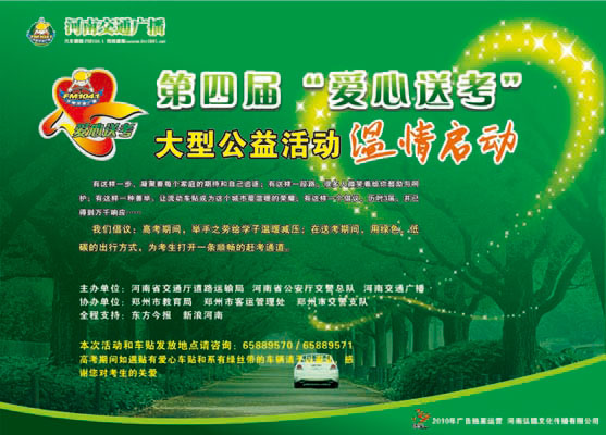 上圖為:河南交通廣播2010年全省愛心送考宣傳畫
