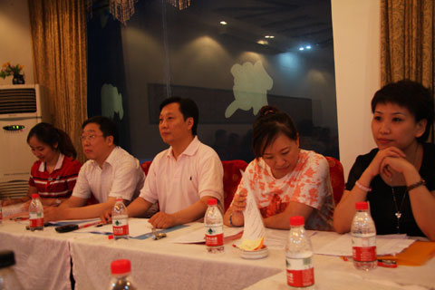 上圖為:河南人民廣播電臺(tái)領(lǐng)導(dǎo)、交通廣播領(lǐng)導(dǎo)組成的評(píng)委團(tuán)在認(rèn)真聆聽(tīng)選手演講