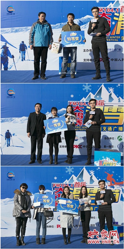 各位親,12月26號(hào)有沒(méi)有去滑雪?。慨?dāng)天上午,F(xiàn)M1041河南交通廣播聯(lián)合禹州市委宣傳部、禹州市旅游局、禹州市大鴻寨臥佛山旅游開(kāi)發(fā)有限公司、禹州市登山協(xié)會(huì)、中國(guó)人保財(cái)險(xiǎn)鄭州市分公司、河南雲(yún)釧商貿(mào)有限公司共同舉辦了河南交通廣播首屆大鴻寨車(chē)友滑雪節(jié)。300輛車(chē),1200多名車(chē)友齊聚禹州大鴻寨high玩滑雪,體驗(yàn)冬季里的“速度與激情”,也分享了萬(wàn)元大獎(jiǎng)。
