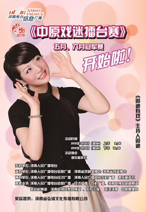今天(7月3日)09:00-12:00、14:00-17:00,“中原戲迷擂臺(tái)賽”五月、六月月冠軍賽將在鄭州德樂(lè)相聲社開賽。河南電視臺(tái)九頻道12:19(明天07:00)《播報(bào)河南》、河南電視臺(tái)新聞?lì)l道16:00《中原播報(bào)》、明天出版的《東方今報(bào)》將對(duì)本次比賽進(jìn)行報(bào)道。
