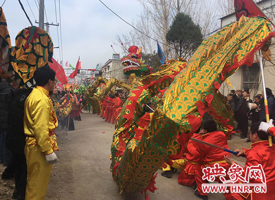 太清村總共才2000多人,3月3日下午卻涌進了近2萬人。有32個舞獅團隊在這里表演,再加上舞龍和其他民間表演,吸引了周邊新鄭、長葛、禹州的人前來觀看。路邊停放的車輛綿延到一公里以外。新鄭市派出交警指揮交通,120急救車也趕到現(xiàn)場,以防意外。
