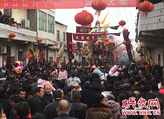 新鄭市觀音寺鎮(zhèn)太清村,新鄭、長葛、禹州的三縣交界處。3月3日下午15時許,太清村的街上人山人海,水泄不通。各條街道上鑼鼓喧天,熱鬧非凡。多個舞獅團隊開始在高高樹起的架子上表演,地面上各種各樣的民間表演爭奇斗艷。