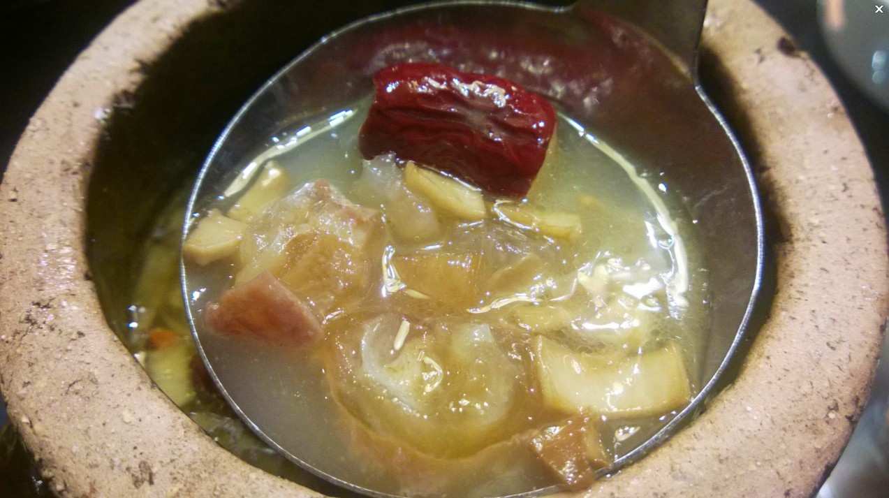 這道菜,我小時(shí)候是吃過的,現(xiàn)在吃起來口味依舊,心里忽而很暖。大肉與骨頭之間沒有太多的牽連,很利口,肉質(zhì)也煮的剛好,嚼起來很有質(zhì)感汁水淋漓,骨關(guān)節(jié)處的軟骨很脆,有一種別樣的滋味,看著咕嘟嘟冒著的熱氣,食欲也開始沸騰了。