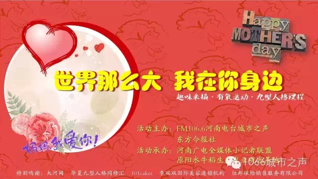 為此,F(xiàn)M106.6河南電臺城市之聲特別舉辦“世界那么大,我在你身邊”母親節(jié)活動。我們還為媽媽們準(zhǔn)備了一份母親節(jié)禮物,九型人格課程“懂她比愛她更重要”!這份禮物不重,但很暖心。