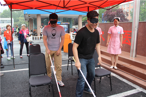 義診活動(dòng)現(xiàn)場(chǎng),還舉行盲人體驗(yàn)活動(dòng),邀請(qǐng)市民戴上眼罩模擬盲人參加各種游戲,以體驗(yàn)健康視力的寶貴。