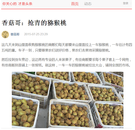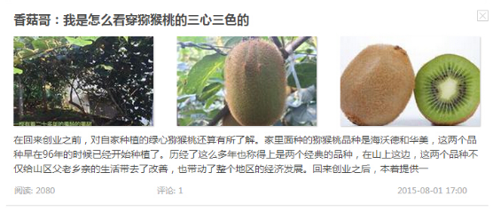 通過這些文章的傳播,我認(rèn)識(shí)到了很多的朋友,這些朋友也給我提供了很多的幫助,通過他們我開拓了視野,對(duì)獼猴桃有了更加深刻的了解。這些幫助都來自于這些文章的宣傳。雖然有時(shí)候晚上熬夜到凌晨的兩三點(diǎn),但是我覺得正是這份辛苦,讓我更加體會(huì)到創(chuàng)業(yè)帶來的精神上的收獲。