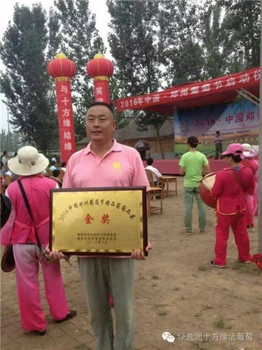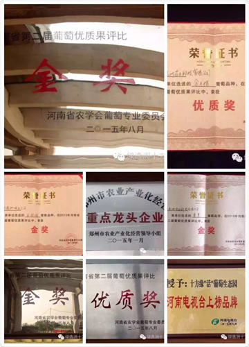 2016年8月5日,由鄭州市農(nóng)業(yè)農(nóng)村工作委員會與鄭州市休閑觀光農(nóng)業(yè)協(xié)會會聯(lián)合舉辦的2016中國鄭州葡萄節(jié)精品葡萄品鑒會,河南緑逸洲農(nóng)業(yè)科技有限公司十方緣“活”葡萄種植基地選送的“自然農(nóng)法”生產(chǎn)的優(yōu)質葡萄品種醉金香喜獲金獎。