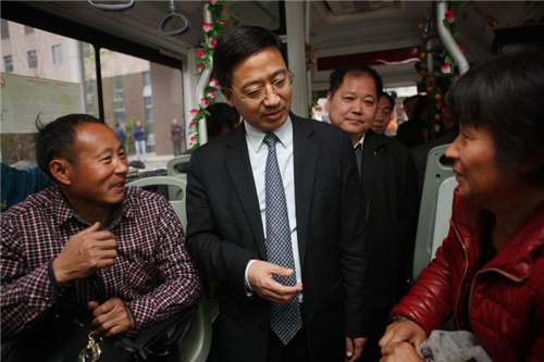 省醫(yī)院長(zhǎng)﹑公交總公司副總經(jīng)理上車體驗(yàn),詢問(wèn)乘客的感受