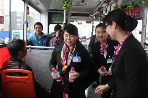 隨車服務(wù)人員贈(zèng)水給乘客,小小一瓶水讓歸家路更舒心