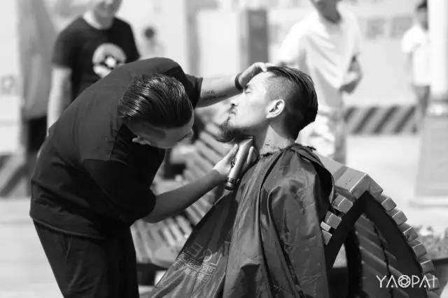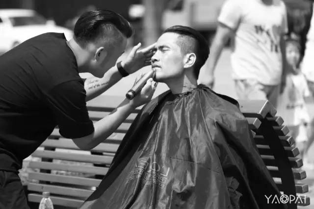 他很享受這個過程,還不時的輕輕撣去掉落在身上的頭發(fā)。