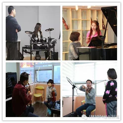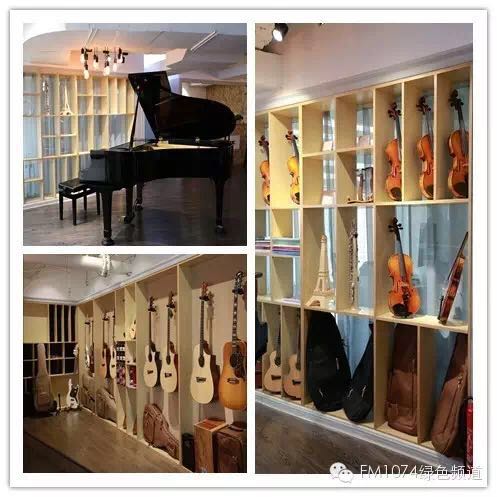 先到上課區(qū)參觀一下,一間挨一間的音樂(lè)教室承載的是一個(gè)又一個(gè)的音樂(lè)夢(mèng)想。這些教室里有聲樂(lè)課、鋼琴課、小提琴課、吉他課、架子鼓課、古箏課……只要你想得到的樂(lè)器,這里都能學(xué)習(xí)。