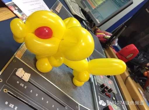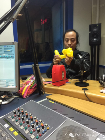 河南電臺1074綠色頻道直播間,胡耀輝現(xiàn)場做起了氣球玩偶。