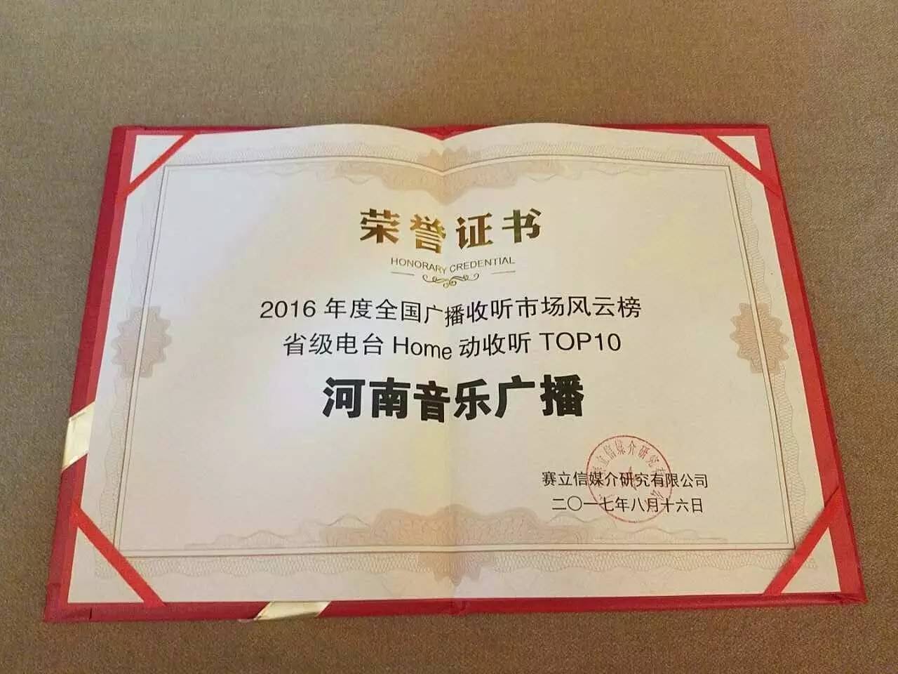 2017年8月16日,賽立信2017年客戶年會(huì)在寧夏回族自治區(qū)銀川市隆重開幕。來自全國各地的近百家電臺(tái)的200位廣播人參加融媒高峰論壇,聆聽了廣東廣播電視臺(tái)副臺(tái)長趙隨意先生,蜻蜓FM副總裁郭嘉先生,荔枝FM總裁何欽龍先生,遠(yuǎn)譽(yù)中國陳志堅(jiān)先生,華中師大教授、碩士生導(dǎo)師王麗女士的精彩演講。在晚上舉行的2016收聽風(fēng)云榜頒獎(jiǎng)典禮上,魅力881河南廣播電視臺(tái)音樂廣播榮獲home動(dòng)收聽榜top10。