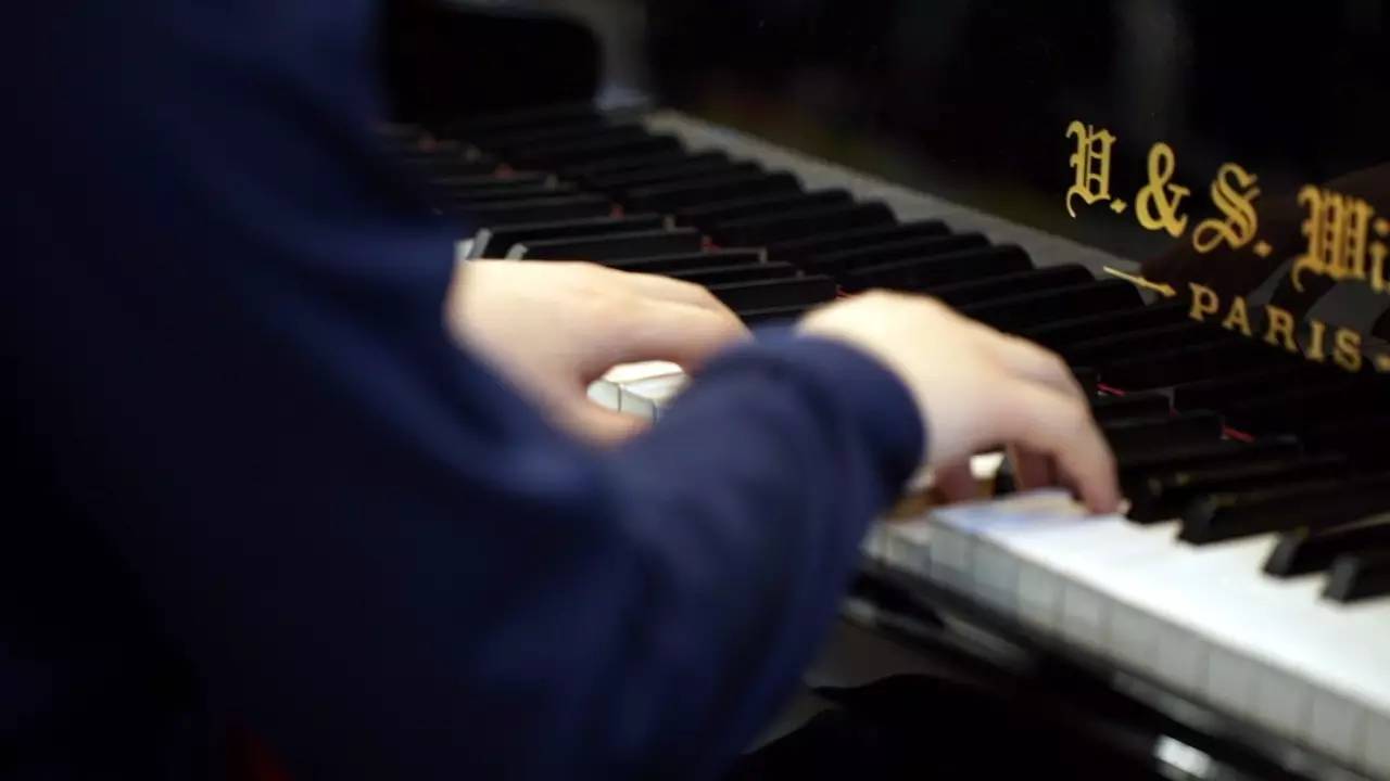 看著孩子還是不說(shuō)話,旁邊的鋼琴師就在這時(shí),彈奏了起來(lái)……