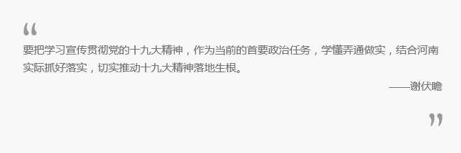 從10月29日謝伏瞻到蘭考縣宣講黨的十九大精神,到11月5日他帶領省委常委瞻仰“焦桐”、“習桐”、重溫入黨誓詞,謝伏瞻的一周行程,為的都是共產(chǎn)黨人從哪里來,到哪里去;為的都是不忘初心、牢記使命、永遠奮斗,其中有太多值得解讀。