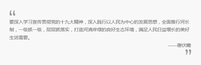 謝伏瞻指出,我們要認真學習宣傳貫徹十九大精神,按照省委省政府制定的方案,全面落實河長制,強化屬地責任,健全長效機制,細化措施辦法,嚴格追責問責,保護水資源,治理水污染,修復水生態(tài)。各級領導要負責,各項制度要落地,各級政府要投入,各項工作要扎實,合力攻堅,真正形成人人參與、共建共享的良好局面。