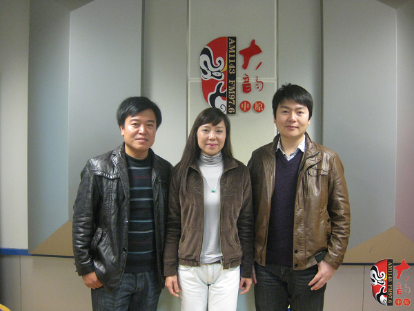 左起:河南虎美玲藝術(shù)學(xué)校主任張曉勝、校長(zhǎng)張茵音,著名戲曲節(jié)目主持人、河南電臺(tái)戲曲廣播當(dāng)家小生月陽(yáng)