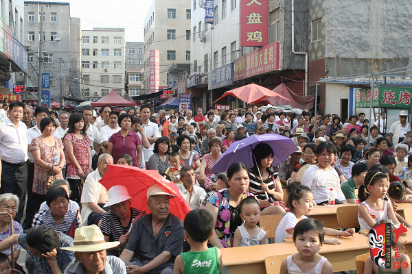 本次活動(dòng)是在河南進(jìn)行的首場(chǎng)活動(dòng),當(dāng)天非常炎熱,但是大家看戲的熱情絲毫沒有減弱。街道里擠滿了前來看戲的居民,大家一邊鼓掌一邊揮動(dòng)著扇子,別有一番風(fēng)味。整個(gè)活動(dòng)持續(xù)兩個(gè)半小時(shí),隨著演出的進(jìn)行,觀眾的熱情不斷高漲,人群中時(shí)而掌聲如雷,時(shí)而捧腹大笑?;顒?dòng)結(jié)束之后,觀眾依然不肯離場(chǎng),當(dāng)?shù)責(zé)崆榈膽蚯鷲酆谜呒娂娚吓_(tái),繼續(xù)著自娛自樂的活動(dòng)。