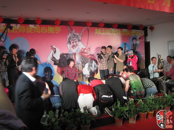據(jù)了解,這是自1994年第一次收徒起,谷秀榮18年來最隆重的一次收徒儀式,66歲的她在收徒現(xiàn)場激動(dòng)不已,她說:“我今天不是在收徒,而是在交志同道合的好友?!彼硎編熗絺円獢y手為熱愛戲曲的人放聲歌唱。