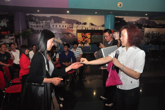 2010年5月8日上午10點(diǎn),河南電臺(tái)旅游廣播FM99.9《故事大秀場(chǎng)》聽友觀影團(tuán),在鄭州百盛6樓的鄭州橫店影視電影城如期舉行。美女主持小佩、菲楊聯(lián)袂登場(chǎng),與聽眾朋友精彩互動(dòng),現(xiàn)場(chǎng)有獎(jiǎng)問(wèn)答,鄭州橫店影視電影城也送出了各種精美禮品!互動(dòng)期間來(lái)自安陽(yáng)的聽眾非常的幸運(yùn),獲得了本次活動(dòng)的大獎(jiǎng),一等獎(jiǎng):精美的純銀情侶對(duì)戒;還有2張價(jià)值45元的橫店影城貴賓券!大家?guī)е约旱亩Y物和歡聲笑語(yǔ),與小佩、菲楊一起在位于鄭州百盛廣場(chǎng)六樓的橫店影城電影城觀看了催淚大片《歲月神偷》,這部影片感動(dòng)了在場(chǎng)的每一位觀眾?;顒?dòng)最后,每位到場(chǎng)的幸運(yùn)聽眾還獲得了鄭州橫店影視電影城贈(zèng)送的寶龍新店“20元現(xiàn)金券”!參與活動(dòng)的所有聽眾都收獲豐厚,真的是滿載而歸呀!在此特別感謝鄭州橫店影視城對(duì)本次活動(dòng)的大力支持!故事大秀場(chǎng)我秀我飛揚(yáng)~~~