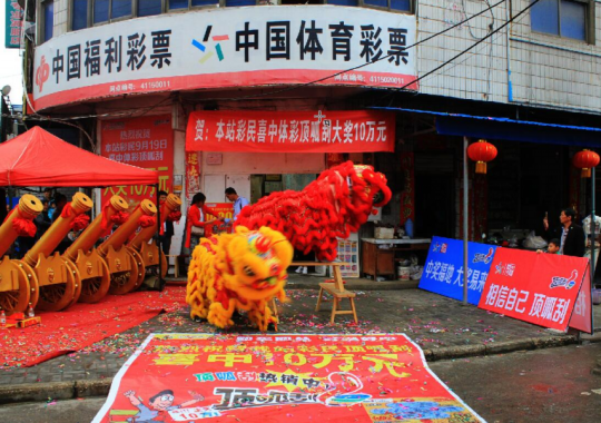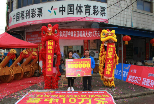 當天下午,雖然下過小雨,但銷售網(wǎng)點門前仍然是人滿為患,好不熱鬧。聽說銷售點中了大獎,很多附近的彩民都來圍觀“中獎福地”,業(yè)主張女士還專門請來了兩組舞獅隊進行即興表演,一時間現(xiàn)場氣氛達到頂點,據(jù)張女士說,自從她的銷售站出了大獎,慕名而來“沾喜氣”的彩民很多,大家都是試試手氣隨手刮上一兩張頂呱刮彩票。