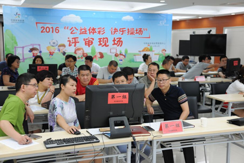評審工作分四組進(jìn)行,每組評審人員首先對報名學(xué)校提供的基本情況進(jìn)行逐項了解,同時,通過學(xué)校提供的校園、現(xiàn)有操場、器材室等實景照片,對是否提供捐贈進(jìn)行綜合打分。最后由工作人員對每組評委的打分進(jìn)行匯總,按照每所學(xué)校得分高低進(jìn)行排序,前25名的學(xué)校入圍2016“公益體彩 快樂操場”(河南)實地考察名單。