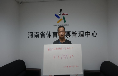 8月14日上午,來自南陽的牛先生來到河南省體彩中心領獎,他所持的彩票中了足球彩票14場勝負游戲第17111期一等獎1注、二等獎13注,獎金136萬元。