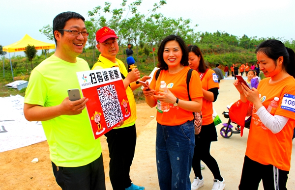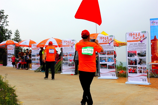 河南體彩管理中心信陽分中心在賽道的4公里處設置了“河南體彩黨支部第十四小組黨員服務站”,布置了休息區(qū)域,免費提供溫開水為大家取用。還以概率游戲的大樂透玩法為主要宣傳內(nèi)容,張貼了宣傳品,現(xiàn)場為大家介紹大樂透的玩法知識。崎嶇的山路上,沿路擺放了體彩頂呱刮的銷售區(qū),由網(wǎng)點業(yè)主自發(fā)開展“掃碼加好友”送即開彩票的線上拉新活動,另外,信陽分中心還為群眾登山愛好者免費提供了簡易的登山杖,確保大家的登山安全。
