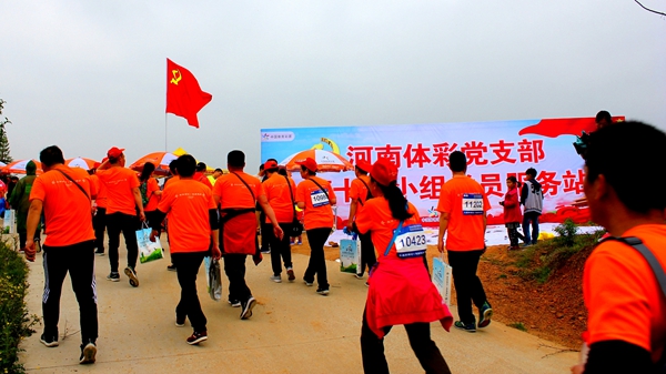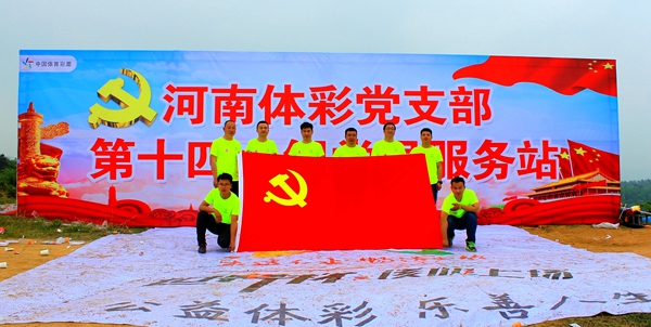 參賽者路過“河南體彩黨支部第十四小組黨員服務站”