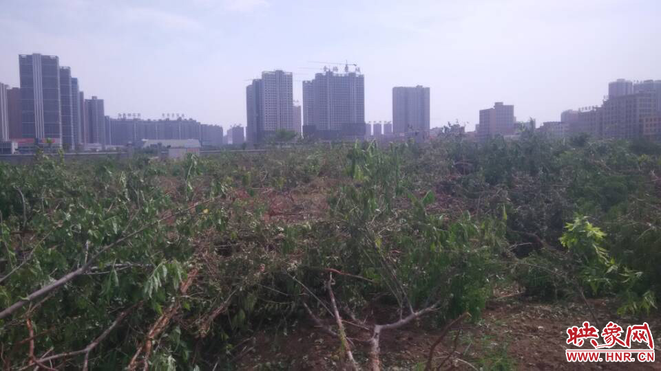 在場群眾坦言,此地塊靠近伊川縣城,緊挨洛欒旅游快速通道,在地理位置上非常優(yōu)越,周圍早已被開發(fā)的樓盤包圍了起來,此次桃樹被砍一事應(yīng)該和村委會想征用此地塊搞開發(fā)有關(guān)。