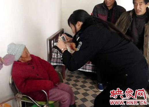 得知情況后,民警孟輝二話不說,當即帶領兩名協(xié)警隨老人的女兒趕到洪陽鎮(zhèn)上洪陽村,到老人的大兒子喬某家中為其辦證。當時老人還沒有起床,民警與老人的兒女一起幫助老人穿衣,并扶她坐端正,經過半個多時辰的努力,幫助老人采集了身份證人像。隨后,民警又趕回派出所,為老人辦理了臨時身份證和戶口簿,老人的女兒感激地握著民警的手,一個勁地說“謝謝”。