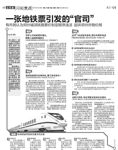 城鐵8元票價(jià)引質(zhì)疑 市民起訴鄭州市物價(jià)局