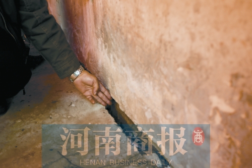河南商報(bào)記者看到,整棟樓的外層也出現(xiàn)了多處裂縫。天明路60號(hào)院情況則更加嚴(yán)重,有一棟樓因?yàn)閮A斜,已經(jīng)與地面形成一條三指寬的縫隙。
