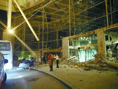 這是九寨溝景區(qū)附近受損的酒店大門(mén)