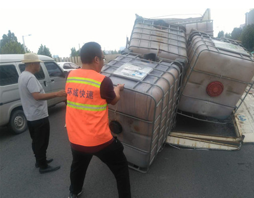 27日下午2時(shí)30分左右,中原區(qū)三官?gòu)R辦事處巡防隊(duì)員李玉章等人,巡邏到西三環(huán)與中原路交叉口附近,突然聽(tīng)到由北向南的高架橋上橋口處傳來(lái)劇烈的撞擊聲,跑過(guò)去一看,是一輛貨車(chē)撞在了限高桿上。隊(duì)員們發(fā)現(xiàn)貨車(chē)上拉的一些方形大桶掉落在上橋口處的車(chē)道里,導(dǎo)致其它車(chē)輛無(wú)法上橋,忙上前與環(huán)城快速管理處的工作人員一起,將這些大桶抬到路邊,清出一個(gè)車(chē)道,協(xié)助交警指揮車(chē)輛緩慢通過(guò)。