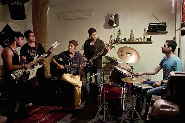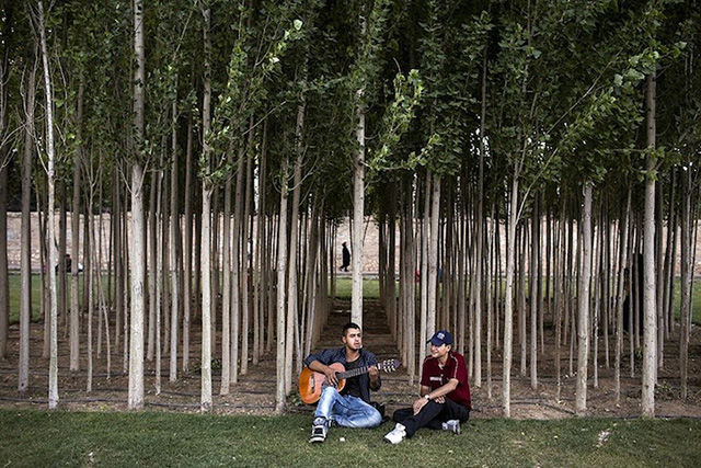 盡管照片中的人顯得很輕松,但對拍攝照片的Fatemi來說卻十分不易。這個攝影師花了數月才被允許進入女性健身房、發(fā)廊等。很多人不愿意被拍到臉,怕被認出來;很多人取消了預約,怕因此丟了工作。雖然存在著種種困難,F(xiàn)atemi還是取得了驚人的成果,為伊朗和外界拍攝了包羅萬象的精美照片。圖為私人搖滾音樂會。搖滾音樂在這里是被禁止的,所以這類表演一般都很隱秘的。