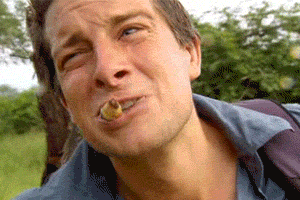 蚱蜢:切掉頭部吃掉,吃得貝爾皺起了臉(這個表情超搞笑),味兒真夠嗆,粘粘稠稠的。