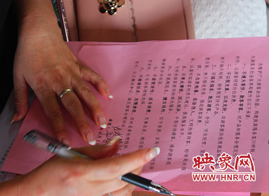 宣誓完后,參加宣誓的各鄉(xiāng)鎮(zhèn)、各有關(guān)委局、旅游景區(qū)、星級酒店、景區(qū)商戶、旅行社以及農(nóng)家賓館業(yè)主紛紛簽訂了《欒川旅游服務(wù)“八不”承諾書》。承諾內(nèi)容包括:不漫天要價,欺客宰客;不以假充真,以次充好;不強買強賣,欺壓游客;不態(tài)度粗暴,惡語傷人;不厚此薄彼,因人而異;不見利忘義,擅自違約;不虛假宣傳,誤導(dǎo)消費;不推諉扯皮,怠慢游客。