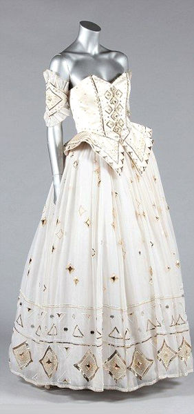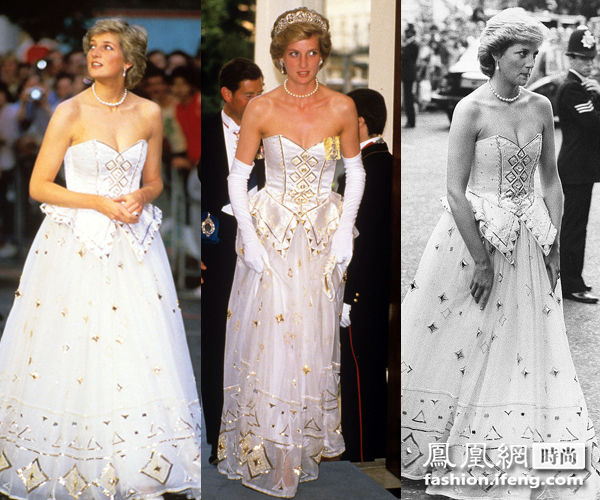 據(jù)悉,該款禮服正是出自王妃曾經(jīng)的婚紗設(shè)計者伊曼紐爾夫婦(David&Elizabeth Emanuel)之手。該禮服在1986年時被推出,是一條飾滿了金片、水晶和珠串的精美華服。由于王妃曾在較短時間內(nèi)三次穿著該禮服出席公眾場合,因此世人皆認(rèn)定這是王妃最鐘愛的服裝。