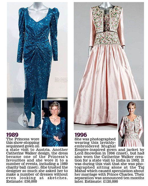 左:Catherine Walker深海綠色亮片禮服。1989年戴安娜王妃穿著該禮服在奧地利進行國事訪問。估價:5萬英鎊