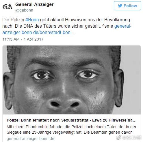 海外網(wǎng)4月4日電據(jù)歐洲時(shí)報(bào)援引德媒報(bào)道,周日(2日)凌晨,在波恩周邊露營的一對(duì)年輕情侶遭到“深色皮膚罪犯”持大彎刀威脅。案犯劃破帳篷強(qiáng)迫23歲女子到帳篷外,當(dāng)著她26歲男友的面將女子強(qiáng)奸。案犯還威脅26歲男友稱“如果敢報(bào)警就殺了他”。目前,警方正在通緝嫌犯,據(jù)估測(cè)嫌犯年齡在20到30歲,身高1.8米。
