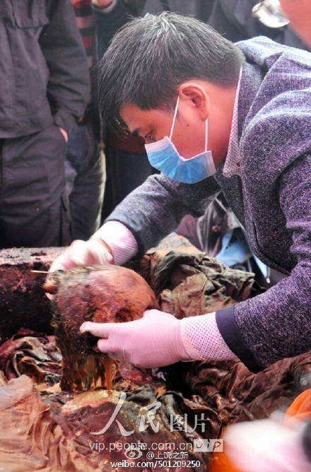 弋陽文物部門江局長介紹稱,已經(jīng)將該墓和古尸照片、傳至考古專家鑒定,棺中發(fā)現(xiàn)的一枚銅鏡,已經(jīng)上交國家相關部門。專家說:此類墓葬,在江西地區(qū)以明代中晚期為多,從照片上看初步判斷,該古尸為明代中期人士,其他相關事宜,還待文物部門做進一步研究判斷。